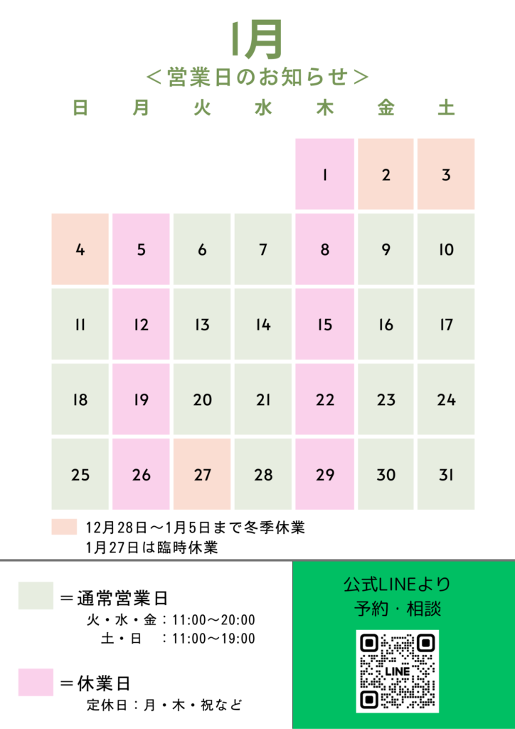2026年1月の営業日